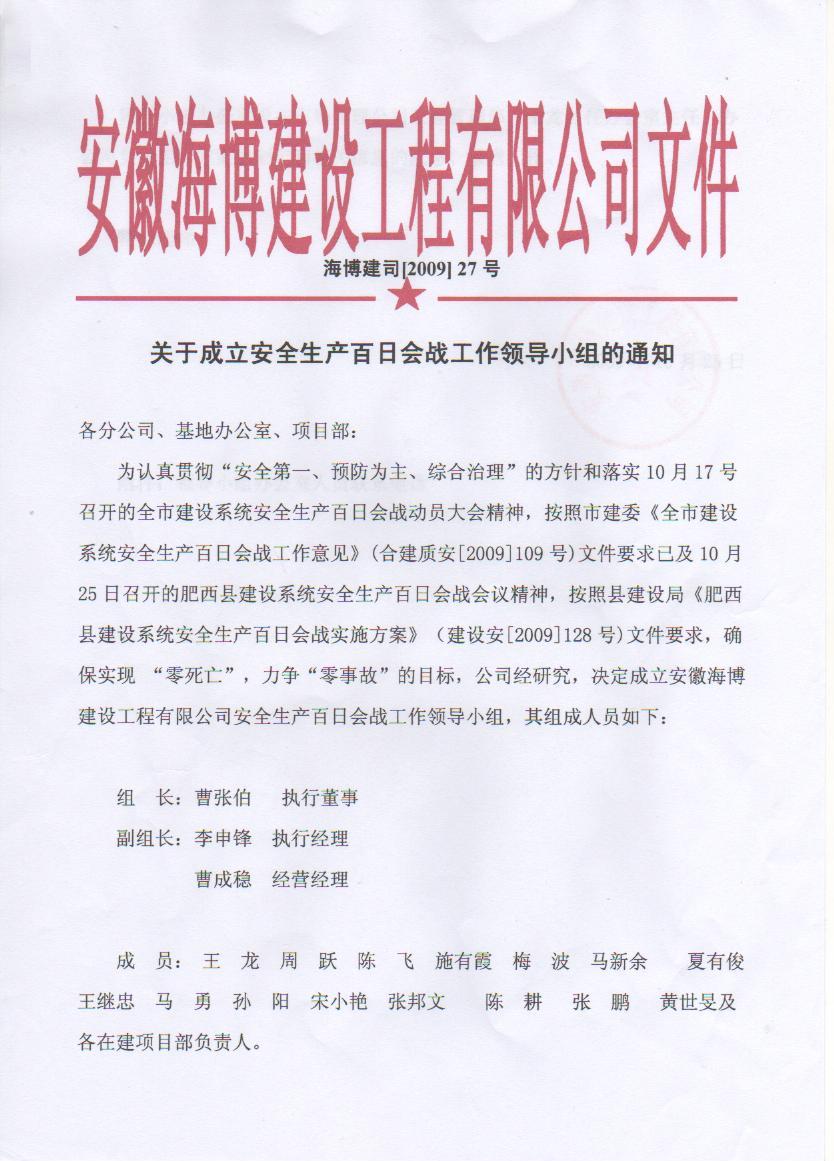 关于成立安全生产百日会战工作领导小组的通知