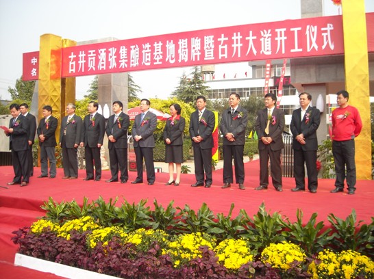 参加开工仪式的有亳州市市委书记、市人大常委会主任方春明,市委副书记、市长牛弩韬,市委常委、副市长袁方,谯城区委副书记、区长吴火权,古井集团党委副书记、纪委书记王峰及我公司副总经理韦东等。市委领导和公司副总经理就张集镇古井贡酒张集酿造基地揭牌暨古井大道开工发表重要讲话,市委书记、市人大常委会主任方春明,市委副书记、市长牛弩韬为酿造基地揭牌 。