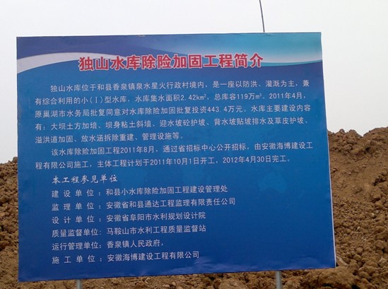10月20日上午,马鞍山市水利质检站专家对由我公司承建的和县两座小(一)型水库独山水库和大金庄水库除险加固工程的重要关键部位放水底涵基槽进行了验收。