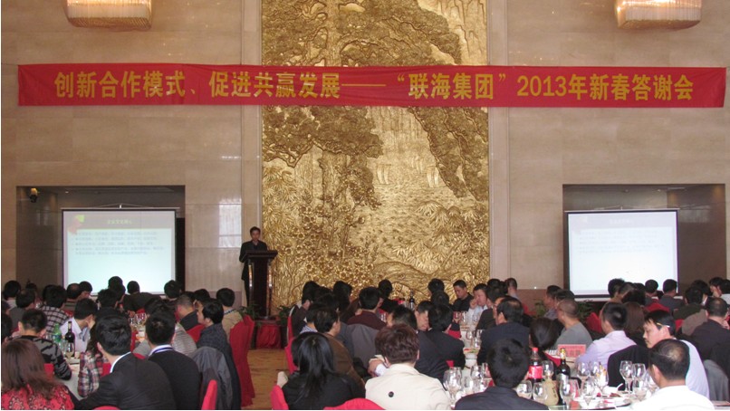 2013年3月9日,“联海集团”2013年新春答谢会在合肥市翡翠湖迎宾馆胜利举行,本次会议是在集团公司顺利完成集团组织架构和职能的优化调整、“米兰站·官方端网站产业园”全面建成既“联海大厦”落成并顺利入驻、米兰站·官方端网站公司成功晋升市政总承包一级资质这三件大事胜利完成的大背景召开的一次盛会。集团公司领导、集团职能部门相关人员、各分公司负责人、部分项目部负责人和嘉宾等近300人参加了会议。此次会议的主要议题是:通报集团公司在2012年取得了振奋人心的成绩、答谢长期关心、支持和信任“联海集团”的各界朋友;宣贯集团公司关于“创新合作模式、促进共赢发展”若干措施等。