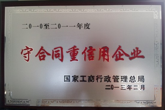 继2007-2008年度、2009-2010年度连续两届“省级守合同重信用”荣誉后,在2010-2011年度“守合同重信用”申报评选中,我公司有幸获得合肥市工商行政管理局和安徽省工商行政管理局的一致认可,推选申报“国家级守合同重信用”单位,并顺利通过国家工商行政管理总局的审查,喜获“国家级守合同重信用”殊荣。