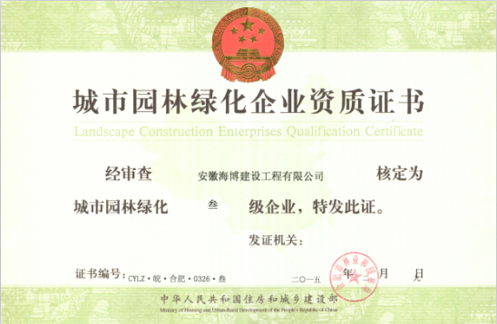 2015年2月17日,值此岁末,新春佳节之际,又一好消息传来,我公司申报的“城市园林绿化叁级资质”获批。