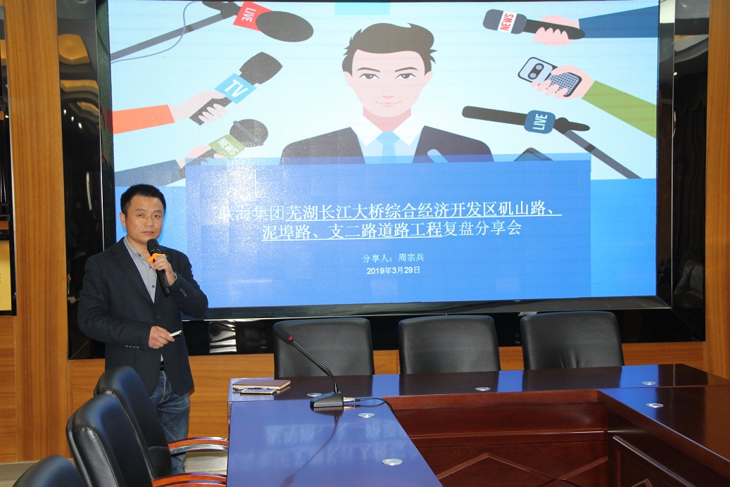 2019年3月29日下午,由发展中心组织的2019年第二场项目复盘分享交流会在联海集团五楼会议室举行,本次复盘分享是由周宗兵同志带来的《芜湖长江大桥综合经济开发区矶山路、泥埠路、支二路道路工程复盘分享》,集团公司各板块领导及同仁参加了此次会议。