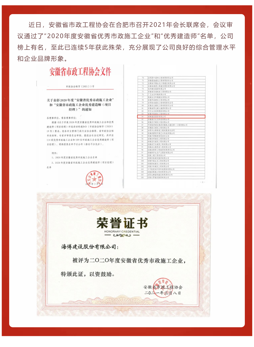 上一篇:公司再获合肥市市政工程优秀企业称号