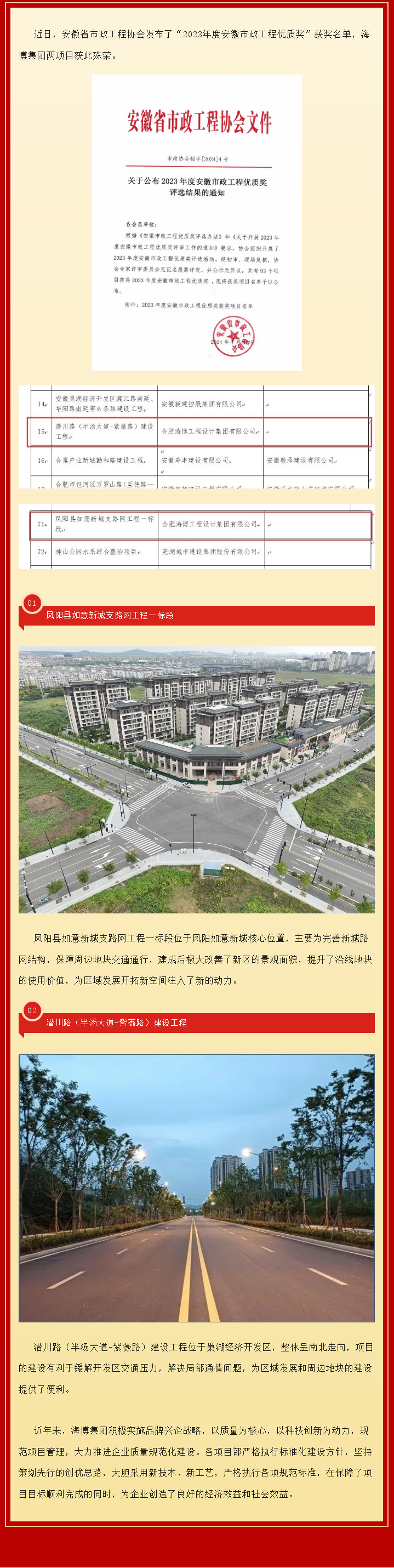 集团两项目荣获“安徽市政工程优质奖”