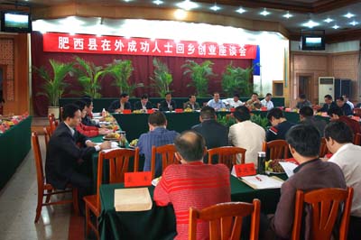 10月15日上午,我公司执行董事曹张伯应邀参加了肥西县在外成功人士回乡创业座谈会。肥西籍外出创业人才、已回乡创业人才代表汇聚一堂,共叙乡情,共商肥西发展大计。县领导陈晓波、李海鹰、孙明权、夏伦平、罗平、黄卫东、杨光磊、汪厚云,各乡镇乡镇长和县直相关单位负责同志等出席会议。